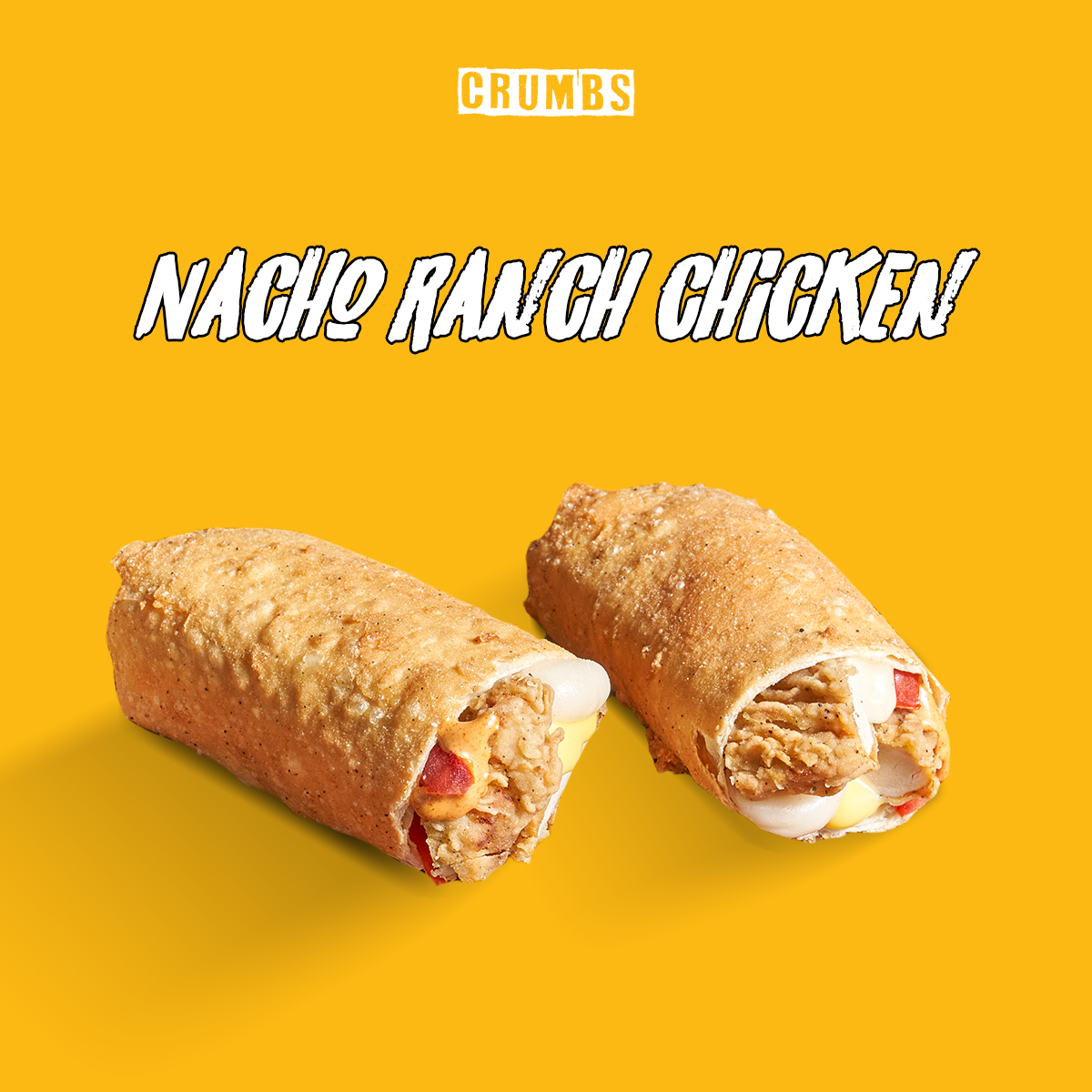 Fried chicken with ranch sauce, mozzarella, cheese sauce, tomato in tortilla